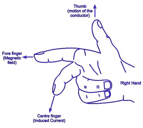 Cuando el conductor que transporta corriente se coloca en un campo magnético, experimenta una fuerza debido al campo magnético, por otro lado, si el conductor se mueve hacia el campo magnético, se induce una fem a través del conductor según la ley de Faraday. Por lo tanto, la dirección de la fuerza y la dirección de la corriente fem inducida se pueden determinar usando regla de la mano izquierda de fleming para motores y Regla de la mano derecha de Fleming para generador