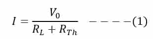 La resistencia de la fuente vista desde el lado de la carga es Rel y el voltaje de Thevenin es V0. Según el teorema de máxima transferencia de potencia, la máxima transferencia de potencia ocurre cuando la resistencia de la fuente es igual a la resistencia de la carga.